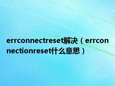 1、 errconnectionreset什么意思
