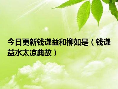 目前上述的内容应该能够为大家解答出大家对于钱谦益和柳如是(钱谦益水太凉典故)的疑惑了,所以如果大家还想要了解更多的知识内容,也可以关注本站其他文章进行了解哦。