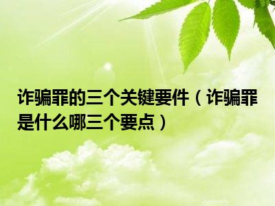 目前大家应该是对诈骗罪是什么哪三个要点比较感兴趣的,所以今天CC就来为大家整理了一些关于诈骗罪是什么哪三个要点方面的相关知识来分享给大家,希望大家会喜欢哦。