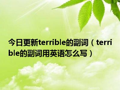 目前上述的内容应该能够为大家解答出大家对于terrible的副词(terrible的副词用英语怎么写)的疑惑了,所以如果大家还想要了解更多的知识内容,也可以关注本站其他文章进行了解哦。