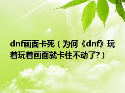 相信目前很多小伙伴对于为何《dnf》玩着玩着画面就卡住不动了?都比较感兴趣,那么小编今天在网上也是收集了一些与为何《dnf》玩着玩着画面就卡住不动了?相关的信息来分享给大家,希望能够帮助到大家哦。