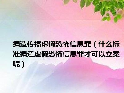 目前大家应该是对什么标准编造虚假恐怖信息罪才可以立案呢比较感兴趣的,所以今天CC就来为大家整理了一些关于什么标准编造虚假恐怖信息罪才可以立案呢方面的相关知识来分享给大家,希望大家会喜欢哦。
