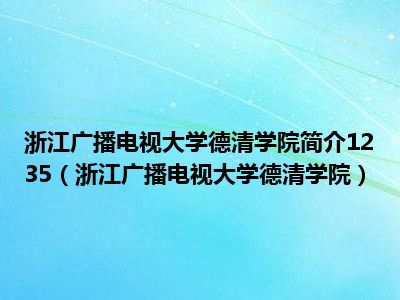 导读目前是有很多朋友们对于浙江广播电视大学德清学院这个信息比较感兴趣,那么小编也是收集了一些浙江广播电视大学德清学院相关的信息来分享给...