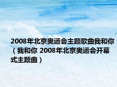 1、《我和你》是2008年北京奥运会开幕式的主题曲,由常石磊、马文和陈其钢作词,陈其钢作曲,中国歌手刘欢和英国歌手莎拉·布莱曼演唱。