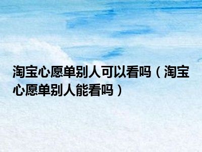 导读 1、淘宝心愿单别人能看吗2、淘宝心愿单别人也能看到。愿望清单是给别人看的,但你不分享,别人就看不到。淘宝是亚太地区的大型网上零售和商