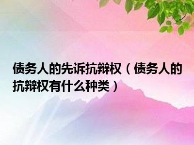 目前大家应该是对债务人的抗辩权有什么种类比较感兴趣的,所以今天CC就来为大家整理了一些关于债务人的抗辩权有什么种类方面的相关知识来分享给大家,希望大家会喜欢哦。