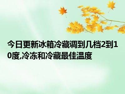 目前大家应该是对冰箱冷藏调到几档2到10度,冷冻和冷藏最佳温度比较感兴趣的,所以今天小编CC就来为大家整理了一些关于冰箱冷藏调到几档2到10度,冷冻和冷藏最佳温度方面的相关知识来分享给大家,希望大家会喜欢哦。
