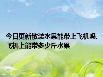 目前大家应该是对散装水果能带上飞机吗,飞机上能带多少斤水果比较感兴趣的,所以今天小编CC就来为大家整理了一些关于散装水果能带上飞机吗,飞机上能带多少斤水果方面的相关知识来分享给大家,希望大家会喜欢哦。