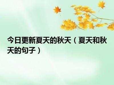 目前上述的内容应该能够为大家解答出大家对于夏天的秋天(夏天和秋天的句子)的疑惑了,所以如果大家还想要了解更多的知识内容,也可以关注本站其他文章进行了解哦。
