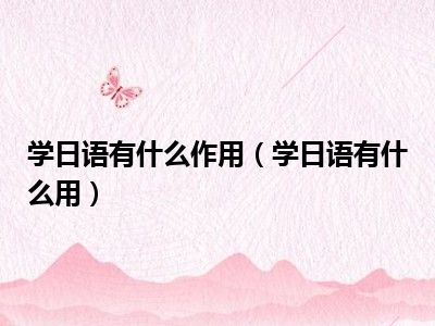 目前应该是有很多小伙伴对于学日语有什么用方面的信息比较感兴趣,现在小编就收集了一些与学日语有什么用相关的信息来分享给大家,感兴趣的小伙伴可以接着往下看,希望会帮助到你哦。
