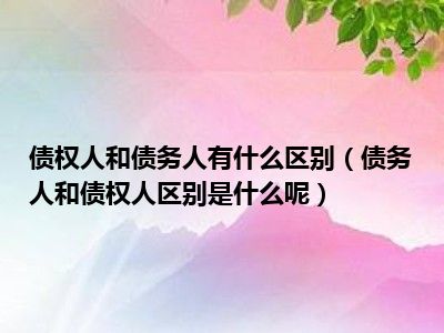 目前大家应该是对债务人和债权人区别是什么呢比较感兴趣的,所以今天CC就来为大家整理了一些关于债务人和债权人区别是什么呢方面的相关知识来分享给大家,希望大家会喜欢哦。