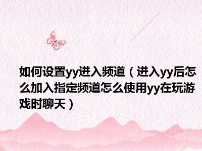 导读相信目前很多小伙伴对于进入yy后怎么加入指定频道,怎么使用yy在玩游戏时聊天。都比较感兴趣,那么小编今天在网上也是收集了一些与进入yy...