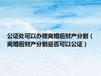 目前大家应该是对离婚后财产分割是否可以公证比较感兴趣的,所以今天CC就来为大家整理了一些关于离婚后财产分割是否可以公证方面的相关知识来分享给大家,希望大家会喜欢哦。