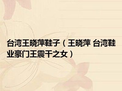 导读 目前是有很多朋友们对于王晓萍 台湾鞋业豪门王震干之女这个信息比较感兴趣,那么小编也是收集了一些王晓萍 台湾鞋业豪门王震干之女相关的