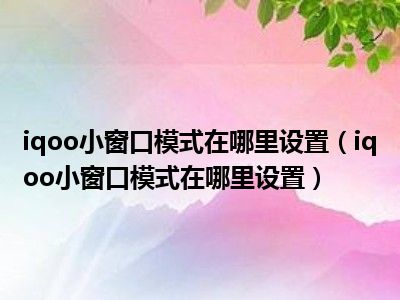 1、 iqoo小窗口模式在哪里设置?