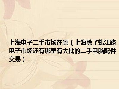 相信目前很多小伙伴对于上海除了虬江路电子市场还有哪里有大批的二手电脑配件交易都比较感兴趣,那么小编今天在网上也是收集了一些与上海除了虬江路电子市场还有哪里有大批的二手电脑配件交易相关的信息来分享给大家,希望能够帮助到大家哦。
