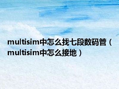 目前应该是有很多小伙伴对于multisim中怎么接地方面的信息比较感兴趣,现在小编就收集了一些与multisim中怎么接地相关的信息来分享给大家,感兴趣的小伙伴可以接着往下看,希望会帮助到你哦。