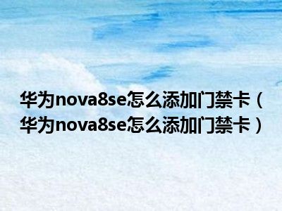 导读 1、华为nova8se怎么添加门禁卡2、只有支持nfc的手机支持门禁卡。华为nova8 SE不具备NFC功能,无法添加门禁卡。3、如果手机型号支持添加门