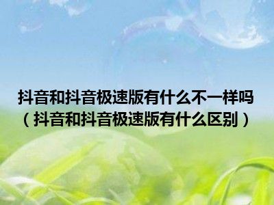 导读 1、抖音和抖音极速版有什么区别2、其实抖音的短视频和Tik Tok的极速版没什么区别。界面是一样的,功能也是一样的,只是极速版多了一个“