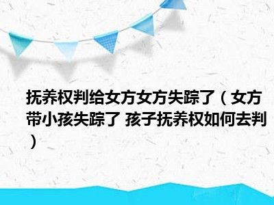 目前大家应该是对女方带小孩失踪了 孩子抚养权如何去判比较感兴趣的,所以今天CC就来为大家整理了一些关于女方带小孩失踪了 孩子抚养权如何去判方面的相关知识来分享给大家,希望大家会喜欢哦。