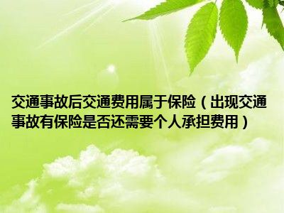 目前大家应该是对出现交通事故有保险是否还需要个人承担费用比较感兴趣的,所以今天CC就来为大家整理了一些关于出现交通事故有保险是否还需要个人承担费用方面的相关知识来分享给大家,希望大家会喜欢哦。