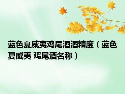 导读 目前是有很多朋友们对于蓝色夏威夷 鸡尾酒名称这个信息比较感兴趣,那么小编也是收集了一些蓝色夏威夷 鸡尾酒名称相关的信息来分享给大家