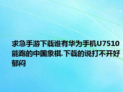 相信目前很多小伙伴对于急求手机游戏下载 谁有华为手机U7510可以运行的中国象棋啊..下载了的说不能打开好郁闷啊.都比较感兴趣,那么小编今天在网上也是收集了一些与急求手机游戏下载 谁有华为手机U7510可以运行的中国象棋啊..下载了的说不能打开好郁闷啊.相关的信息来分享给大家,希望能够帮助到大家哦。