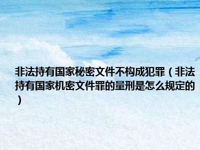 刑法对非法持有国家机密文件罪的量刑规定:非法持有属于国家绝密、机密的文件、资料或者其他物品,拒不说明来源与用途的,处三年以下有期徒刑、拘役或者管制。