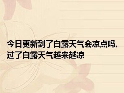 目前大家应该是对到了白露天气会凉点吗,过了白露天气越来越凉比较感兴趣的,所以今天小编CC就来为大家整理了一些关于到了白露天气会凉点吗,过了白露天气越来越凉方面的相关知识来分享给大家,希望大家会喜欢哦。