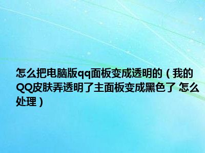 相信目前很多小伙伴对于我的QQ皮肤弄透明了主面板变成黑色了 怎么处理都比较感兴趣,那么小编今天在网上也是收集了一些与我的QQ皮肤弄透明了主面板变成黑色了 怎么处理相关的信息来分享给大家,希望能够帮助到大家哦。