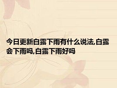 目前大家应该是对白露下雨有什么说法,白露会下雨吗,白露下雨好吗比较感兴趣的,所以今天小编CC就来为大家整理了一些关于白露下雨有什么说法,白露会下雨吗,白露下雨好吗方面的相关知识来分享给大家,希望大家会喜欢哦。