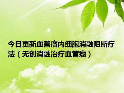 目前上述的内容应该能够为大家解答出大家对于血管瘤内细胞消融阻断疗法(无创消融治疗血管瘤)的疑惑了,所以如果大家还想要了解更多的知识内容,也可以关注本站其他文章进行了解哦。