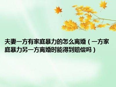 导读目前大家应该是对一方家庭暴力另一方离婚时能得到赔偿吗比较感兴趣的,所以今天CC就来为大家整理了一些关于一方家庭暴力另一方离婚时能得到...