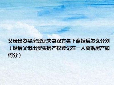 目前大家应该是对婚后父母出资买房,产权登记在一人,离婚房产如何分比较感兴趣的,所以今天CC就来为大家整理了一些关于婚后父母出资买房,产权登记在一人,离婚房产如何分方面的相关知识来分享给大家,希望大家会喜欢哦。