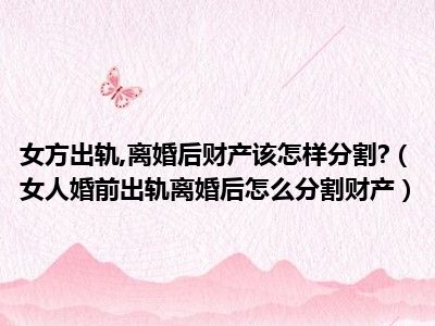 目前大家应该是对女人婚前出轨离婚后怎么分割财产比较感兴趣的,所以今天CC就来为大家整理了一些关于女人婚前出轨离婚后怎么分割财产方面的相关知识来分享给大家,希望大家会喜欢哦。