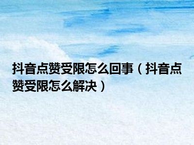 导读 1、抖音点赞受限怎么解决2、Tik Tok的赞量有限后,一般第二天就会恢复。而且,当用户在Tik Tok喜欢每一个视频或评论时,他们只能喜欢