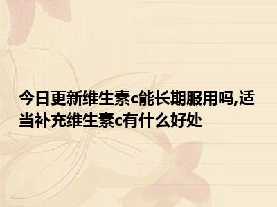 目前大家应该是对维生素c能长期服用吗,适当补充维生素c有什么好处比较感兴趣的,所以今天小编CC就来为大家整理了一些关于维生素c能长期服用吗,适当补充维生素c有什么好处方面的相关知识来分享给大家,希望大家会喜欢哦。