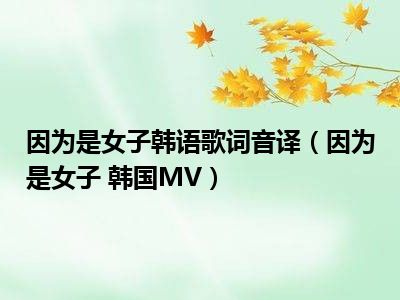 导读 目前是有很多朋友们对于因为是女子 韩国MV这个信息比较感兴趣,那么小编也是收集了一些因为是女子 韩国MV相关的信息来分享给大家,希望你...
