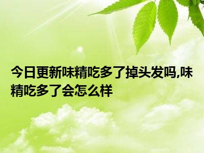 目前大家应该是对味精吃多了掉头发吗,味精吃多了会怎么样比较感兴趣的,所以今天小编CC就来为大家整理了一些关于味精吃多了掉头发吗,味精吃多了会怎么样方面的相关知识来分享给大家,希望大家会喜欢哦。