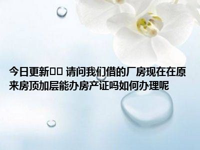 导读 目前大家应该是对 请问我们借的厂房现在在原来房顶加层能办房产证吗如何办理呢比较感兴趣的,所以今天好房网小编CC就来为大家整理了一