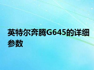 相信目前很多小伙伴对于Intel 奔腾 G645的详细参数都比较感兴趣,那么小编今天在网上也是收集了一些与Intel 奔腾 G645的详细参数相关