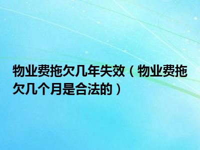 物业费拖欠多久都不合法,只要拖欠物业费就是不合法的。法律规定业主拖欠物业费的,物业可以催告其在合理期限内支付;如果业主在合理期限届满仍不支付的,物业服务人可以提起诉讼或者申请仲裁。