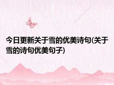 目前上述的内容应该能够为大家解答出大家对于关于雪的优美诗句(关于雪的诗句优美句子)的疑惑了,所以如果大家还想要了解更多的知识内容,也可以关注本站其他文章进行了解哦。