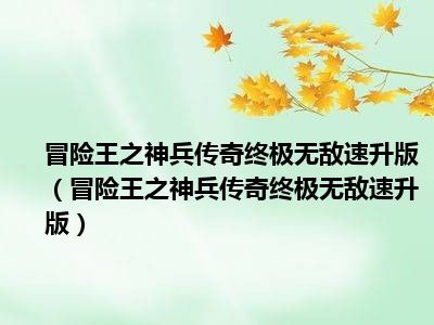导读 目前是有很多朋友们对于冒险王之神兵传奇终极无敌速升版这个信息比较感兴趣,那么小编也是收集了一些冒险王之神兵传奇终极无敌速升版相关的