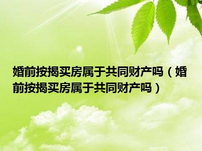 目前大家应该是对婚前按揭买房属于共同财产吗比较感兴趣的,所以今天CC就来为大家整理了一些关于婚前按揭买房属于共同财产吗方面的相关知识来分享给大家,希望大家会喜欢哦。