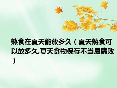 目前大家应该是对夏天熟食可以放多久,夏天食物保存不当易腐败比较感兴趣的,所以今天小编CC就来为大家整理了一些关于夏天熟食可以放多久,夏天食物保存不当易腐败方面的相关知识来分享给大家,希望大家会喜欢哦。