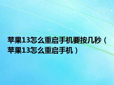 1、 苹果13怎么重启手机