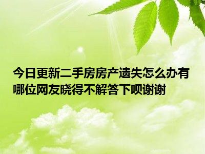 导读 目前大家应该是对二手房房产遗失怎么办有哪位网友晓得不,解答下呗,谢谢!比较感兴趣的,所以今天好房网小编CC就来为大家整理了一些关于二