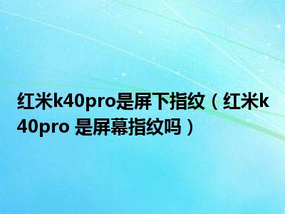 导读 1、红米k40pro+是屏幕指纹吗2、不是,红米k40pro是侧面指纹。它采用了新一代符合人体工程学的侧面指纹识别技术,并与侧面的电源键融为一体