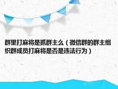 目前大家应该是对微信群的群主组织群成员打麻将是否是违法行为比较感兴趣的,所以今天CC就来为大家整理了一些关于微信群的群主组织群成员打麻将是否是违法行为方面的相关知识来分享给大家,希望大家会喜欢哦。